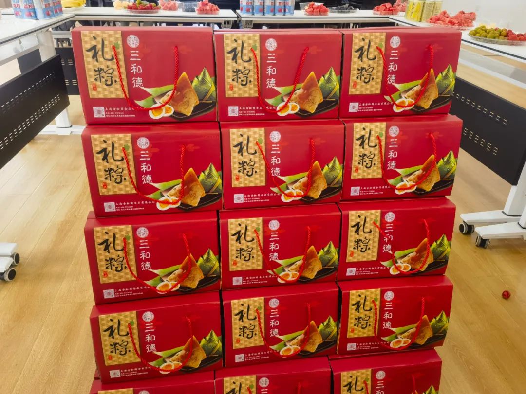 隨后,公司給所有員工發放了節日福利——粽子禮盒,一粒粒粽子經過大家的手有了溫度,給他們帶去節日的溫暖和問候。