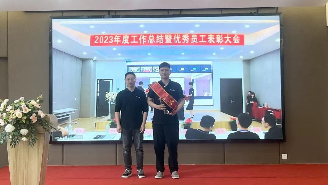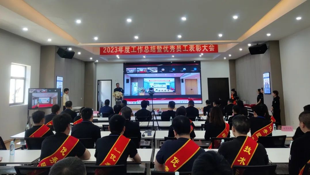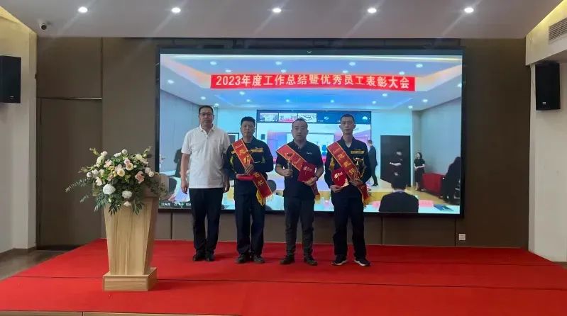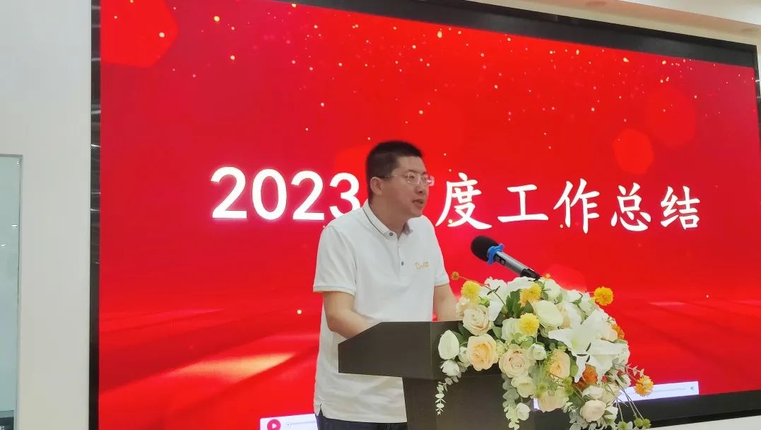 總經理李忠偉向全體員工通報了公司2023經營年度的成績,向受表彰的先進集體及個人表示祝賀,勉勵受到表彰的集體和個人再接再厲,繼續發揚工匠精神。